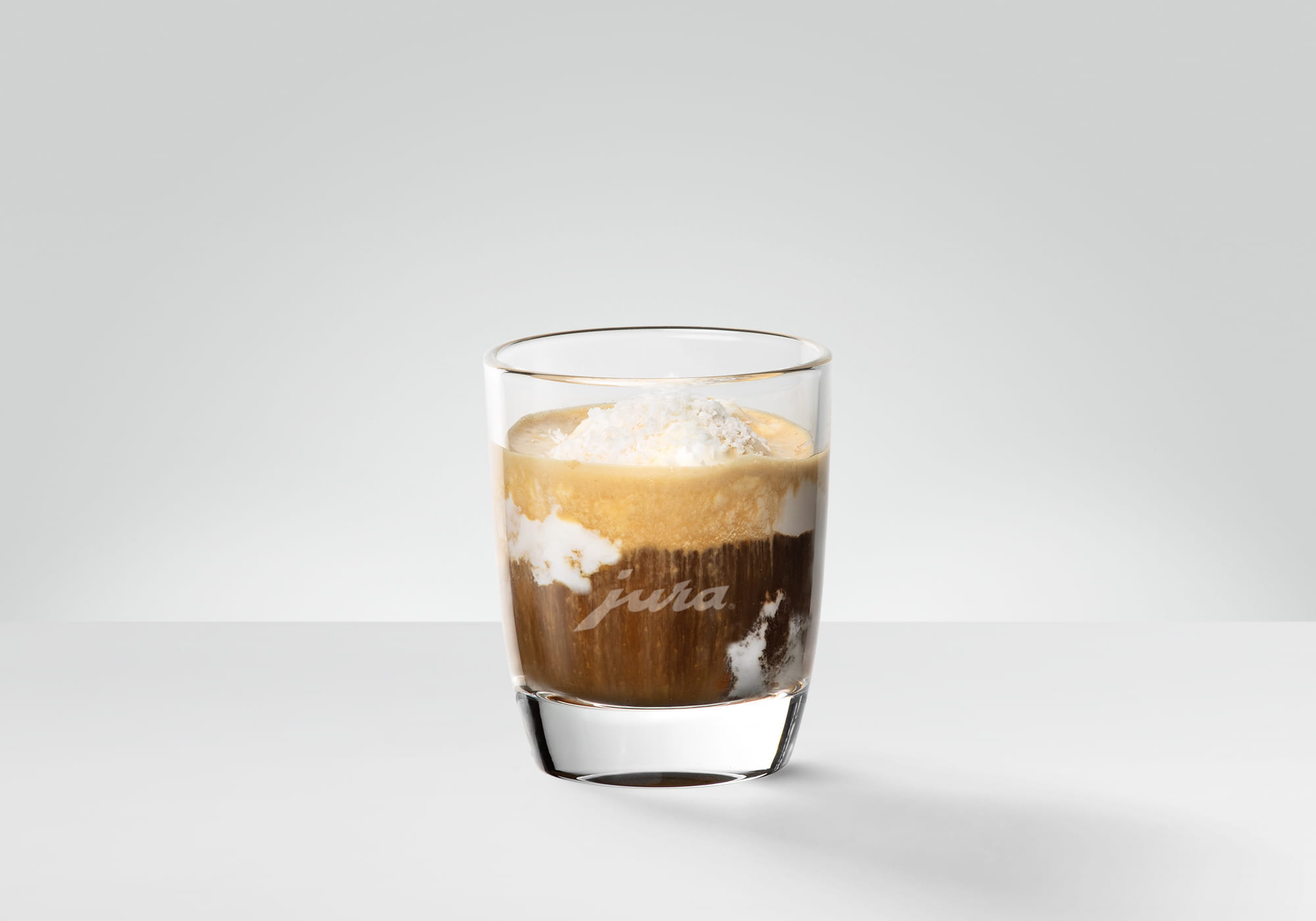 • Doe een bolletje kokosnootijs in een espressoglas.
