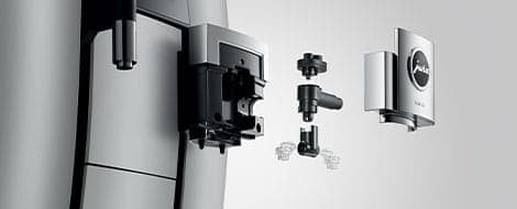 Het onderhoud van de GIGA X3c gaat net zo gemakkelijk, logisch en intuïtief als de bediening ervan. Originele JURA onderhoudsproducten en geïntegreerde spoel- en reinigingsprogramma's zorgen met één druk op de knop voor TÜV-gecertificeerde hygiëne. De melksysteemreiniging is net zo doordacht. Volautomatisch en gestart door een touch op het display garandeert deze perfecte reinheid in de omgang met melk. De massieve combi-uitloop kan in een handomdraai worden gedemonteerd. De daarin vooraan geplaatste melkuitlopen zijn gemakkelijk toegankelijk en kunnen indien nodig zeer eenvoudig worden vervangen.