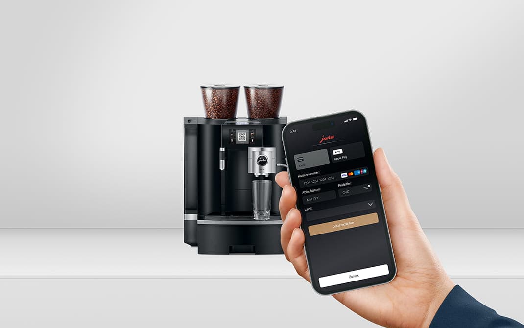 De GIGA X8c beschikt over het nieuwe betaal- en beheersysteem Pocket Pilot 2.0. Met Pocket Pilot 2.0 kunt u zonder contant geld betalen én de machine centraal bewaken zonder bijkomende infrastructuur. Dat is mogelijk dankzij “Payment Connect”, dat probleemloos in de GIGA X8c geïntegreerd kan worden. Het webgebaseerde systeem is gratis en vergt geen installatie van software. Na het aanmaken van een account voor de JURA Pocket Pilot 2.0 kunt u zonder beperking apparaten beheren.