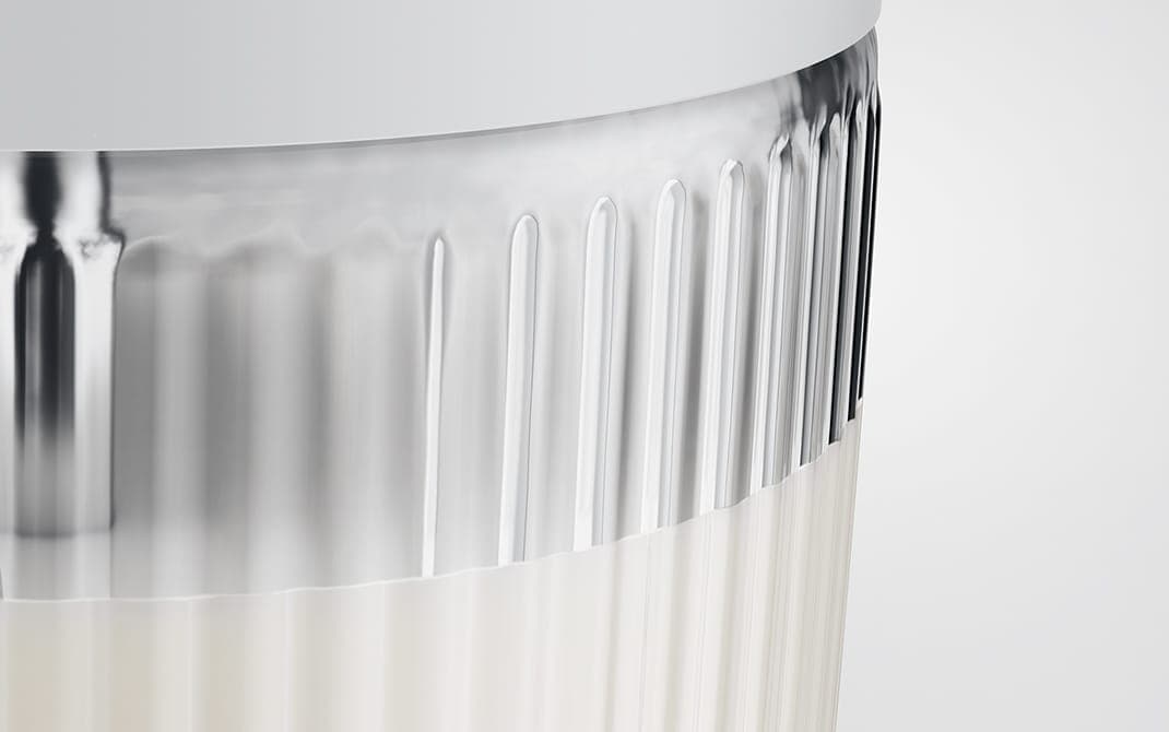 Doordat de melkkaraf van borosilicaatglas is gemaakt, is hij bestand tegen temperatuurschommelingen en krassen. Hij is geschikt voor hygiënische reiniging in de vaatwasser, beschermt de melk en melkalternatieven tegen geurtjes en houdt ze vers. Dankzij de dikke bodem staat de karaf stabiel en veilig en met zijn geribbelde oppervlaktestructuur ziet hij er heel elegant uit.