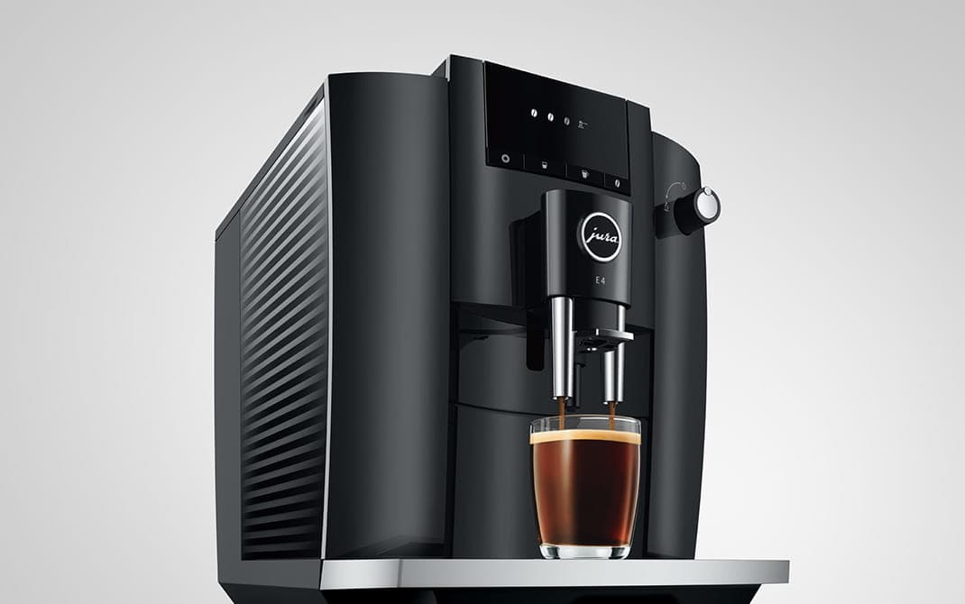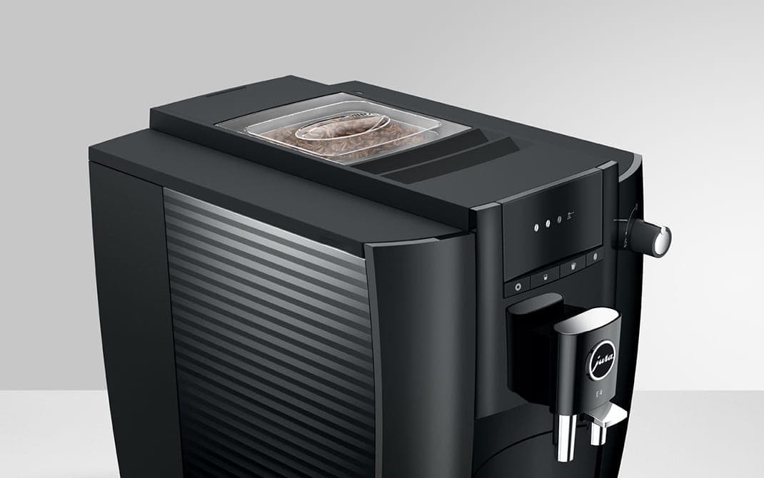 De E4 heeft het karakteristieke design van de JURA-volautomaten. Kenmerkend zijn de strakke vlakken en duidelijke contouren. Het vereenvoudigde design met zeer nauwkeurige afwerking onderstreept de premiumkwaliteit van de volautomaat nog eens extra. Purisme spreekt ook uit de keuze van de kleur. Terwijl de volledige behuizing in discreet Piano Black is gehouden, zorgen verchroomde highlights voor hoogwaardige accenten waardoor de volautomaat kwaliteit uitstraalt.