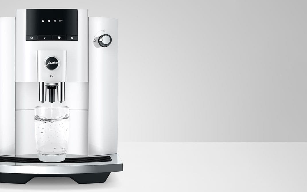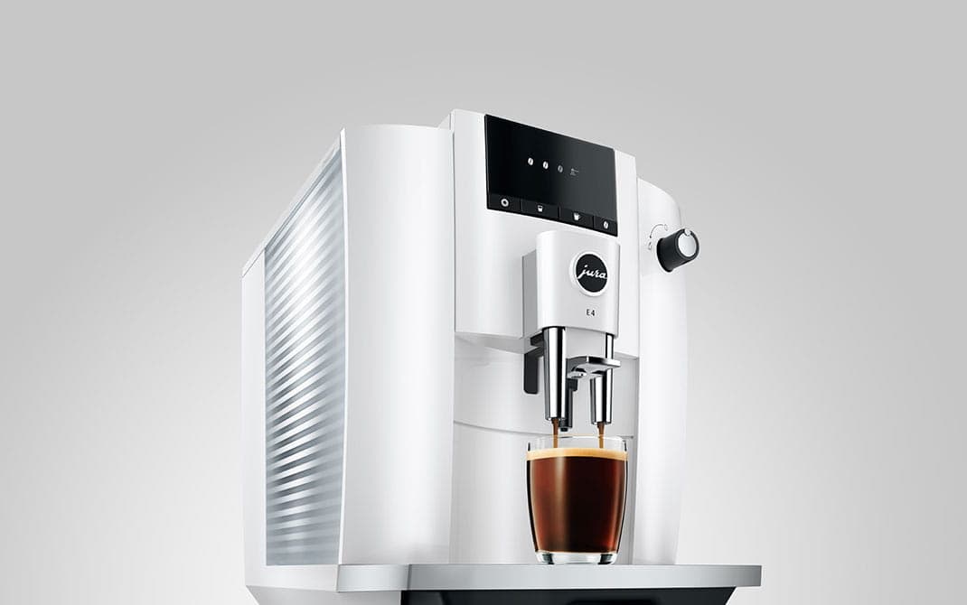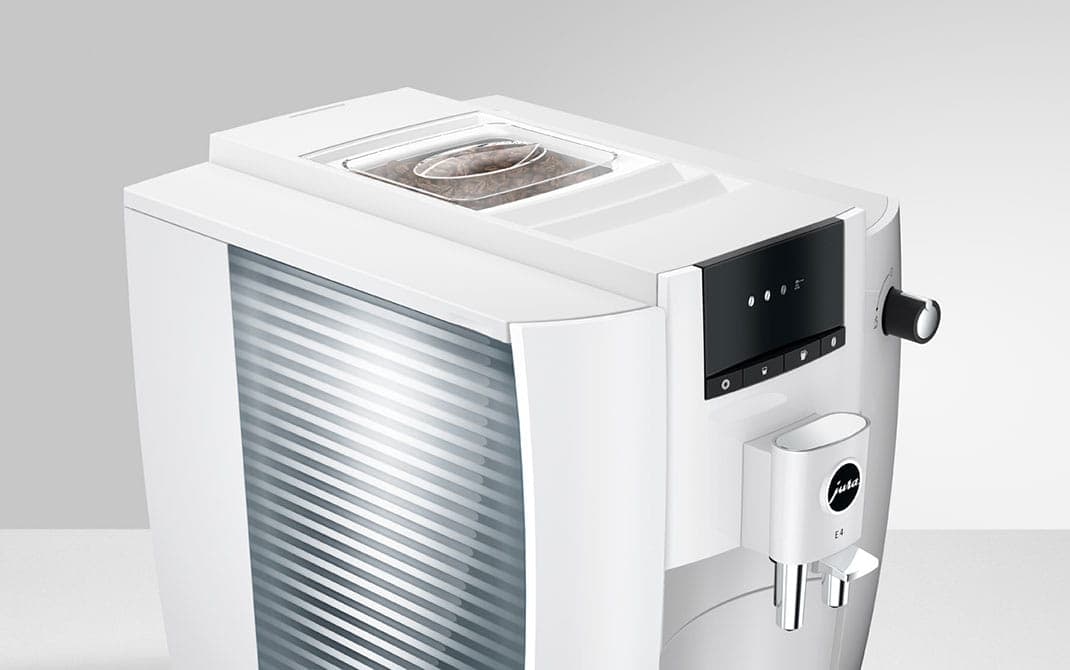 De E4 heeft het karakteristieke design van de JURA-volautomaten. Kenmerkend zijn de strakke vlakken en duidelijke contouren. Het vereenvoudigde design met zeer nauwkeurige afwerking onderstreept de premiumkwaliteit van de volautomaat nog eens extra. Purisme spreekt ook uit de keuze van de kleur. Terwijl de volledige behuizing in discreet Piano White is gehouden, zorgen verchroomde highlights voor hoogwaardige accenten waardoor de volautomaat kwaliteit uitstraalt.