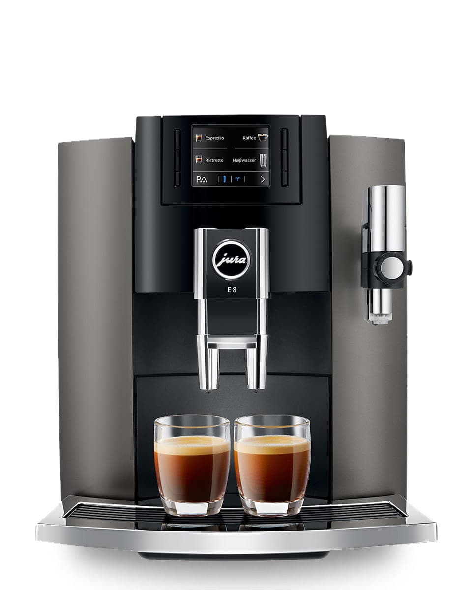 Of het nu gaat om de One-Touch Cappuccino-functie voor trendspecialiteiten zoals latte macchiato, flat white en cappuccino of het Pulse Extraction Process (P.E.P.®) wat zorgt voor de optimale extractietijd en daarmee bij korte koffiespecialiteiten maximaal aroma garandeert – uitgerust met de nieuwste technologieën van JURA weet de nieuwe E8 een imposant spectrum aan specialiteiten met één druk op de knop te voorschijn te toveren.