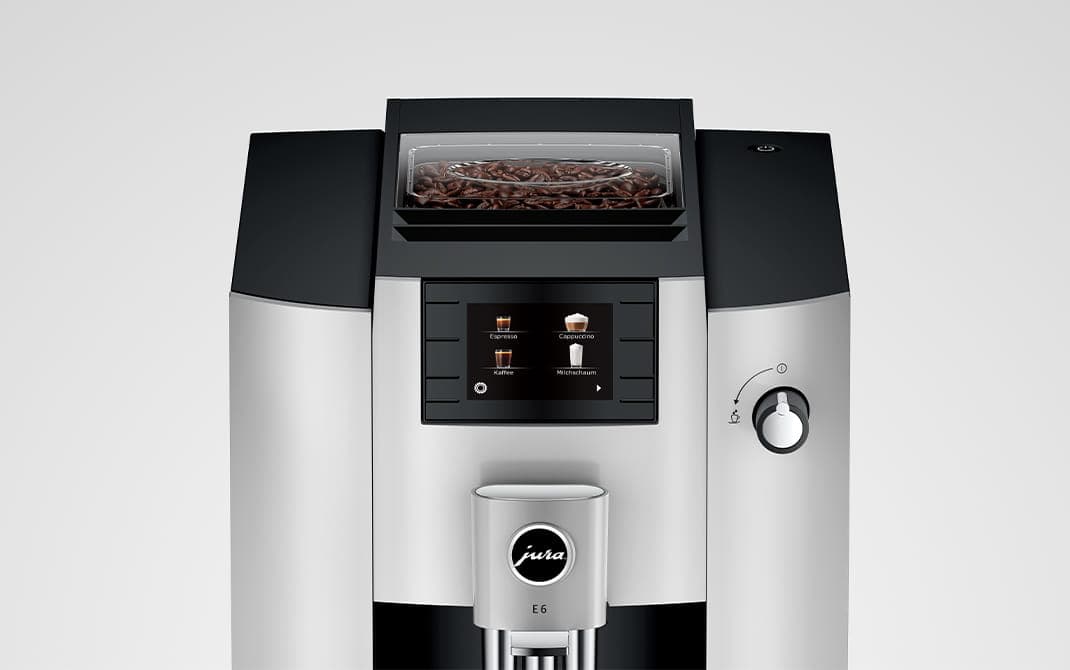 Het overzichtelijke 2,8" kleurendisplay, zes ideaal geplaatste toetsen en een intuïtief bedieningsconcept maken een comfortabele bediening van de E6 mogelijk, zowel voor eenvoudige koffiebereiding als voor het instellen van individuele voorkeuren of de zelfverklarende reinigingsfuncties. Natuurlijk is de E6 ook compatibel met J.O.E.®: bereid vanuit uw smartphone koffiespecialiteiten, stel uw persoonlijke voorkeuren in en sla ze op of stuur kinderlijk eenvoudig meerdere koffiebestellingen van uw gasten direct naar de volautomaat voor koffiespecialiteiten.