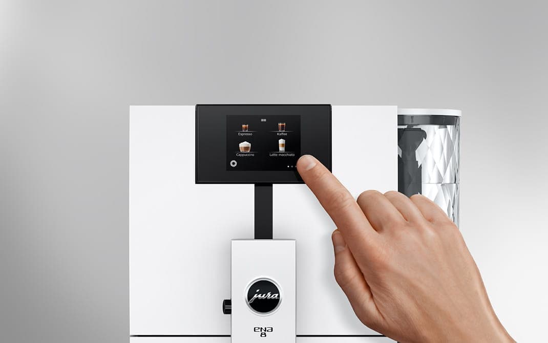 Via het overzichtelijke touchscreen en het intuïtieve, stringente gebruikersmenu kunt u met één tip van de vinger kiezen uit 15 specialiteiten. Even ongecompliceerd kan de melksysteemreiniging met één druk op de knop worden gestart, waardoor deze te allen tijde voor TÜV-gecertificeerde hygiëne zorgt. Of bedien uw koffie-volautomaat heel eenvoudig via uw smartphone: uiteraard is de ENA 8 dankzij WiFi-technologie ook compatibel met J.O.E.®.